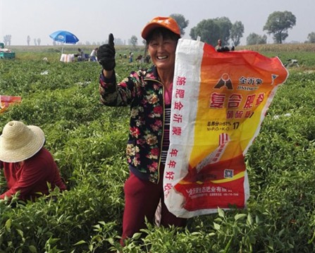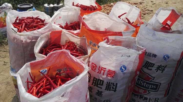 山西省忻州市忻府區令歸村一望無際的田野里,火紅色的辣椒在碧綠的葉子中若隱若現,椒農們在田間快樂地采摘,忙碌而又辛苦,但是喜悅寫在了每個人的笑臉上。作為該村辣椒種植的首選肥料,播種季節,金沂蒙生態肥給他們送來了希望,收獲季節,肥料包裝袋又為他們裝載了滿滿的豐收。