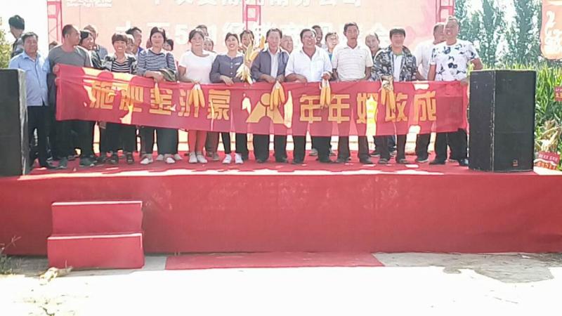 蔚藍色的天空,青綠色的玉米,金黃色的T恤,大紅色的條幅,山西省陽曲縣高村鄉北白村,金沂蒙攜手百信農資經銷部召開的玉米觀摩會,一場進行中的豐收盛宴。望著長勢極佳,豐收在望的玉米,百信農資張海榮總經理欣慰地笑了,與會的人員紛紛為金沂蒙生態肥點贊。