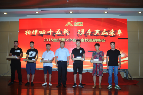 四十五年風雨同舟,四十五年攜手同行。金沂蒙在發展歷程中,與經銷商朋友相濡以沫,結下了深厚的友情。在合作分享環節,來自渦陽的楊總進行了激情澎湃的演說,并即興作詩一首。楊總作為金沂蒙2017年度的新客戶,首度合作便突破了2000噸,談及成功經驗,楊總認為,是金沂蒙的產品質量和完善服務給他奠定了堅實的基礎,再加上個人的敢干、實干加巧干,所以才實現了銷量的遞增和市場的拓展。來自利辛的趙總和亳州的李總也上臺分享了與金沂蒙的合作點滴,真實的感受,淳樸的語言,贏得了現場觀眾的陣陣掌聲。