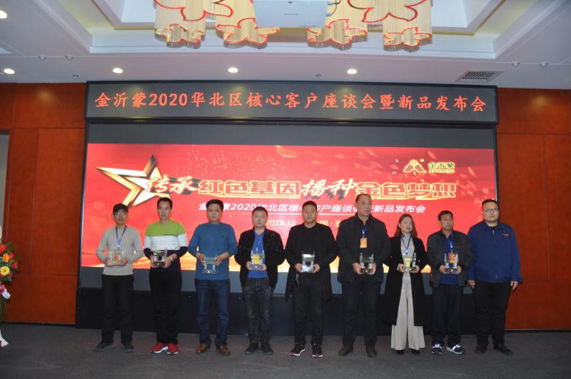 金沂蒙在發展歷程中,得到了廣大客戶朋友的大力支持,廠商之間建立了深厚的友誼,客戶的信賴與支持是金沂蒙發展的堅強后盾,讓金沂蒙在激烈的市場競爭中逆流而上。為了樹立標桿,激勵先進,金沂蒙對表現突出的客戶進行了表彰,授予“戰略合作伙伴”的榮譽稱號,金沂蒙生態肥業西北大區銷售總監趙仕金和河北大區銷售總監崔峰為獲獎者頒獎。來自河北大名的史總、山西壽陽的檀總和山西渾源的姜總分別發表了獲獎感言,分享了與金沂蒙合作的點滴,表達了將與金沂蒙攜手同行,共克時艱的信心與決心。
