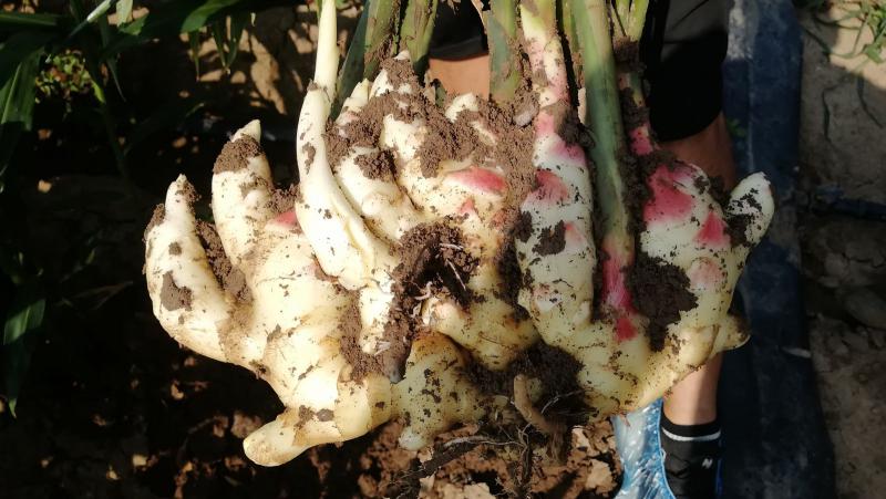 通過走訪來看,雖然今年的天氣情況對大姜的生長不利,但是施用金沂蒙肥料的大姜,普遍長勢良好。站在地頭放眼望去,植株高大健壯,莖桿粗壯挺拔,葉子濃綠茂盛,分叉密密麻麻。走進地里,隨便挖起一棵,姜塊肥大,色澤鮮亮,實力與顏值并存,保守估計得3斤以上。現在距離收獲期還有兩個月的時間,做好后期的田間管理,大姜繼續膨果,高產已成定局。