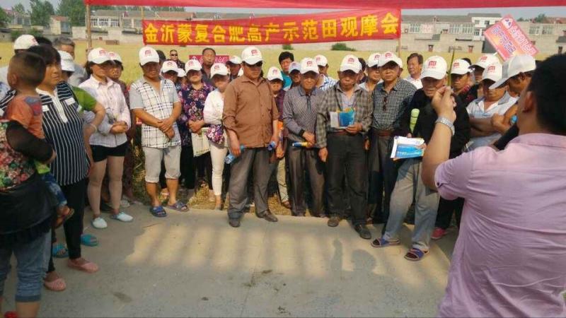 夜來南風(fēng)起,小麥覆隴黃。隨著氣溫的逐步升高,全國各地的冬小麥陸續(xù)進(jìn)入成熟收獲期,金沂蒙生態(tài)肥業(yè)有限公司的系列小麥?zhǔn)痉短镉^摩會也隨之展開。5月24日,安徽省亳州市雙溝鎮(zhèn)的麥田里,人頭攢動,熱鬧非凡,金沂蒙高產(chǎn)示范田現(xiàn)場觀摩會正如期舉行,數(shù)百名附近的農(nóng)民、種田大戶、農(nóng)場主等自發(fā)趕來,實(shí)地察看施用金沂蒙復(fù)合肥的小麥的長勢。