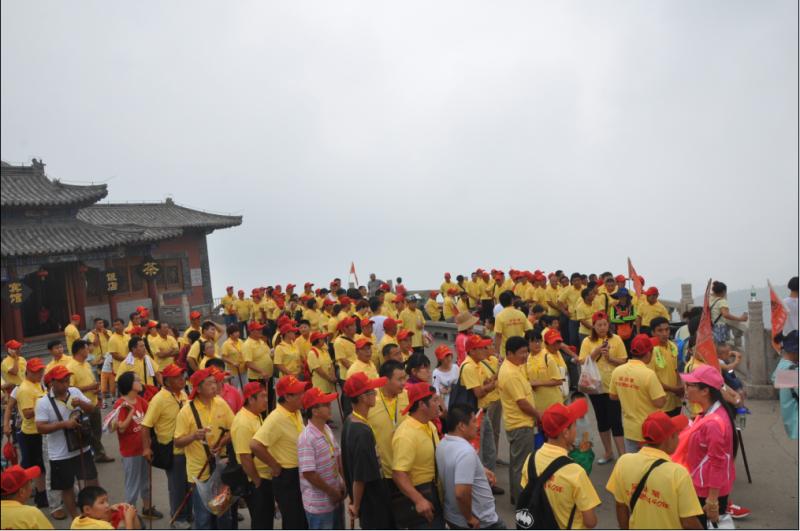 登上泰山之巔的優秀經銷商,無不贊嘆泰山的壯觀,其實,經銷商們在欣賞風景,同時也成為了其他游客眼中的風景。三百余名組織有序的嘉賓,統一著金沂蒙的黃色T恤和紅色太陽帽,登山過程中展現的英勇無畏的精神風貌,以及超強的組織紀律性,成為了泰山之上一道亮麗的風景線,讓游客們眼前一亮,駐足欣賞。