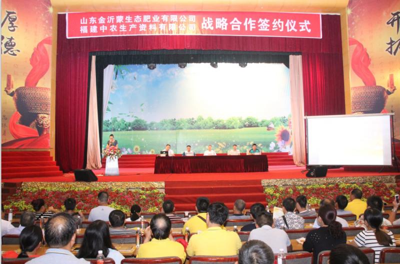 8月13日,山東金沂蒙生態肥業有限公司與福建中農農業生產資料有限公司戰略合作簽約儀式在金沂蒙集團禮堂舉行。金沂蒙生態肥業營銷總監王紹山,東南大區經理陳永,福建中農農業生產資料有限公司農化部長賈部長賈進,福州站站長王明海,漳州站站長沈添義出席簽約儀式,福建中農各地的優秀經銷商及金沂蒙生態肥業的營銷精英共同見證了這一榮耀時刻。