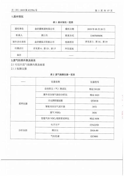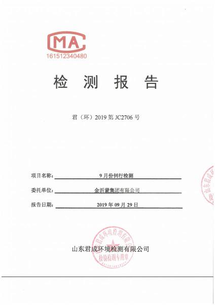 金沂蒙集團(tuán)9月份第1次檢測(cè)報(bào)告