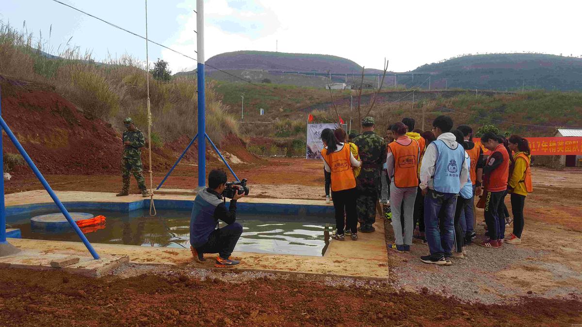 拓展訓練讓企業低迷的員工重振士氣。保山天賜時代服裝城--員工凝聚力素質拓展